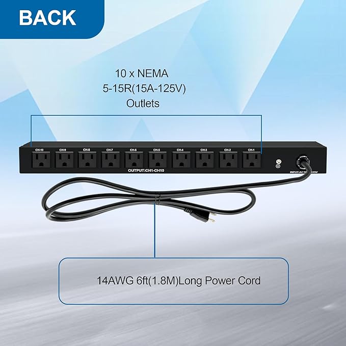 - 10-Outlet Power Distribution: This 1U rackmount PDU features 10 NEMA 5-15R outlets to power multiple AV, IT, and telecom devices simultaneously