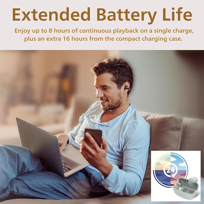 - STAY AWARE and CONNECTED:The JVC nearphone open-air earbuds deliver dynamic sound directly to your outer ear, immersing you in rich audio while keeping you aware of your surroundings.