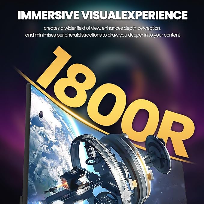 - 1800R Curved Monitor: With a 27-inch FHD 1920x1080 resolution and an 1800R curved VA panel, a 178° wide viewing angle, this computer monitor pulls you into the action. Whether you're gaming, watching content, or working, the curved screen enhances immersion and visual focus for better performance and eye comfort