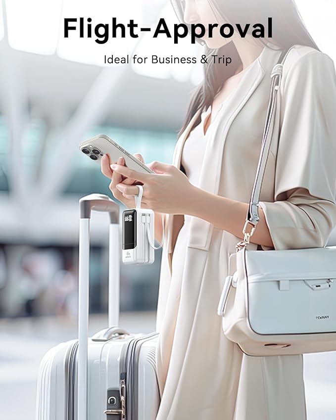 Portable Charger, 65W Power Bank Fast Charging, USB C Battery Pack with Built in Cable, 4 Outputs Powerbank, Travel Essentials Compatible with iPhone 17 16 15 14 13 iPad MacBook Pro Samsung Dell XPS
