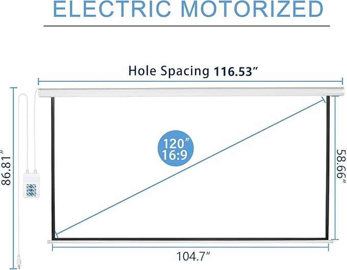 Kayle 120" Motorized Projector Screen Electric Diagonal Automatic Projection 16:9 HD Movies Screen for Home Theater Presentation Education Outdoor Indoor W/Wireless Remote, Wall/Ceiling Mount (Black)