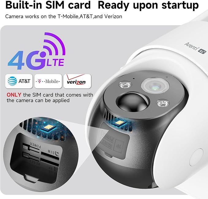 - 【SIM Card Included & Data Plan Needed】Arenti outdoor security camera wireless is equipped with a 4G LTE SIM card, supporting Verizon, T-Mobile, AT&T, and offers a 3-day free unlimited data trial plan, renewable after 3-days on the app for $15.99 per month ($11.99 via paypal), $43.99 per quarter ($29.99 via paypal), 159.99 per year 99.99 via paypal). Recommend using the phone chip provided in the package for better compatibility.