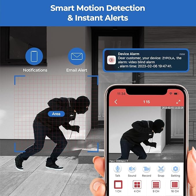 - Smart Motion Detection & Instant Alerts - Stay informed with motion-triggered recording and real-time notifications sent to your phone or email whenever movement is detected.