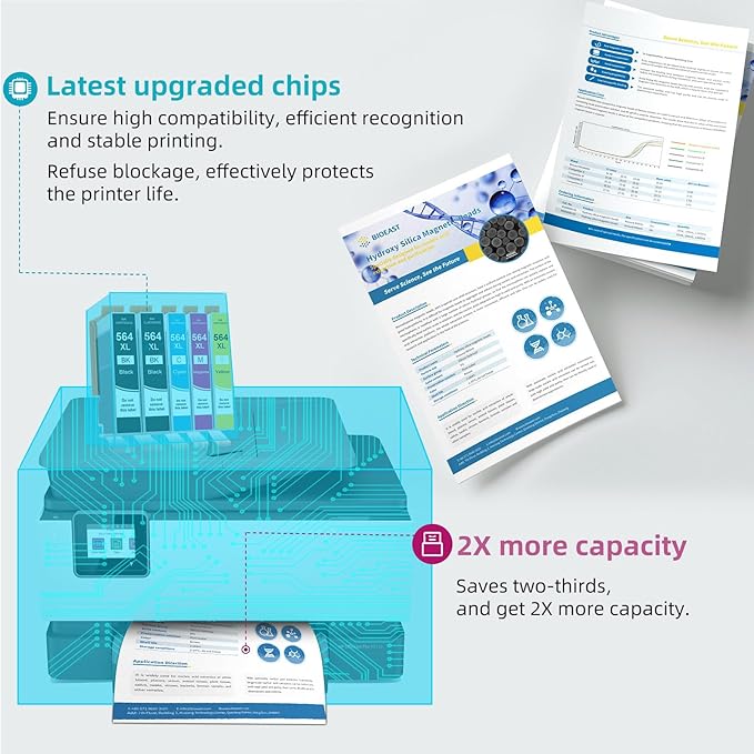 - 564 XL ink cartridge yield (approx.) per cartridge: Up to 800 pages per Black, 750 pages per Color, based on 5% coverage (Letter/A4)