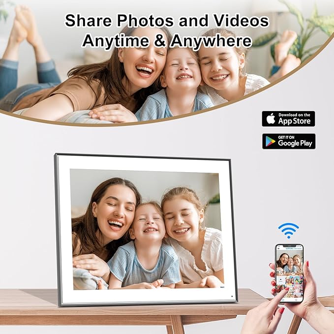 - 【Effortless Wireless Sharing】 Seamlessly beam your latest photos over WiFi for quick, hassle-free updating. Thanks to the convenient wireless connectivity, you can add new pictures on the fly, keeping your digital frames for photos WiFi fresh. Displaying your ever-growing collection is smooth with our digital photo frames that play video. Effortlessly share and view your most cherished moments over the air on the digital photo frames you can send pictures to.