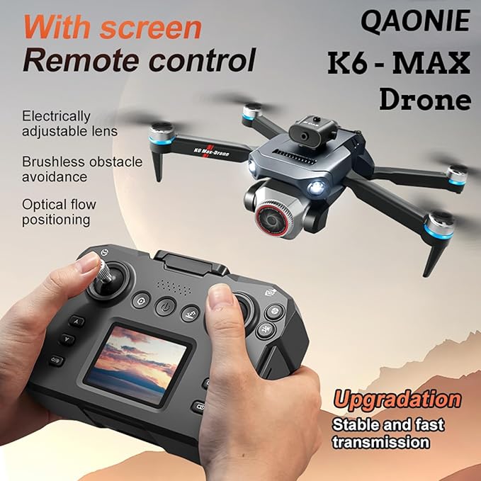 K6 Max Drone with Screen Controller with SD card, Brushless Motor, 3 batteries, Waypoint Fly, Optical Flow Localization, Active Obstacle Avoidance, One Key Take Off/Landing.