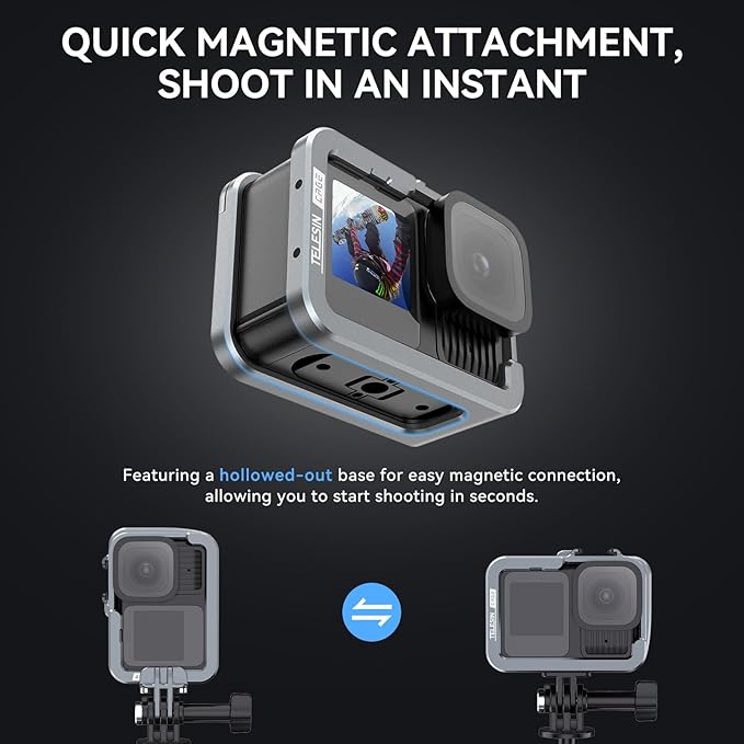TELESIN Aluminum Case Metal Camera Cage for Go Pro 13 12 11 10 9, Protective Frame Housing with ND/CPL Lens Filter Compatibility, Protective Cage with 2 Cold Shoe Mount for Camera Accessories
