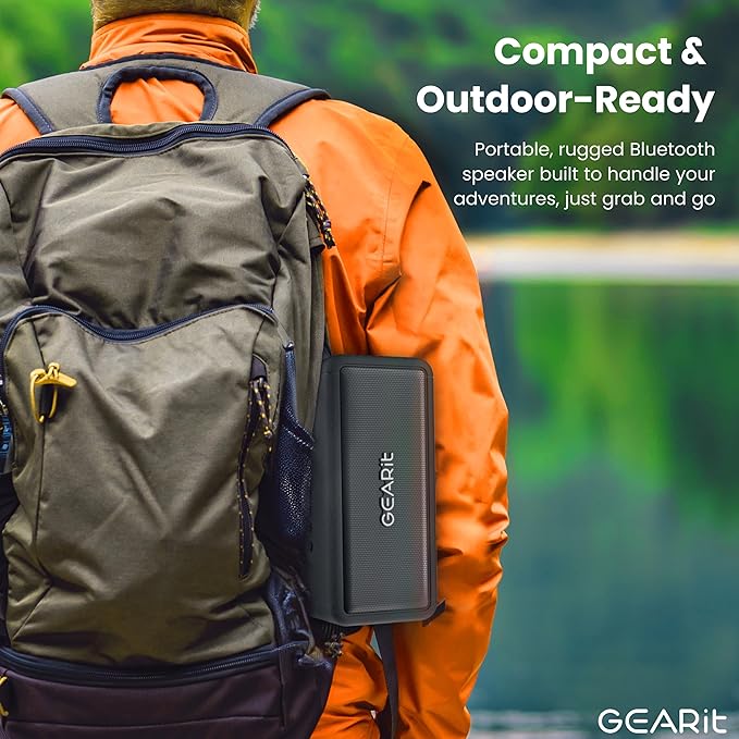 - GEARit IPX6 Water-Resistant Speakers: Stay worry-free with this portable Bluetooth speaker, built to handle splashes and rain effortlessly. Lightweight and featuring a lanyard for easy carrying, it can be taken on beach trips, poolside parties, or any outdoor activity.