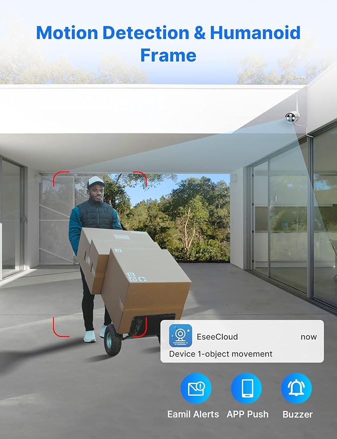 - 【1TB & Cloud Storage】Outdoor security camera system is preinstalled 1TB Hard Drive, will store 24/7 days time continuous loop recording, which will loop about 30 days. 7-days free cloud storage for one channel camera, each channel need buy cloud storage one by one