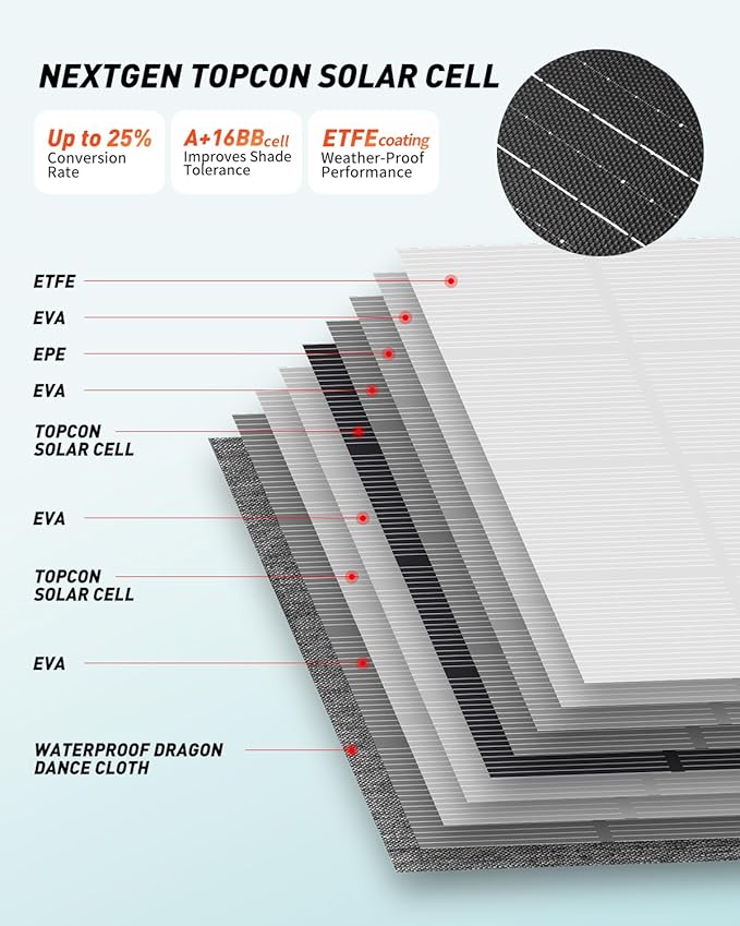 - 【High-Efficiency Performance】Achieve maximum energy conversion with a >24.5% efficiency rate. This 60W solar panel generates reliable power even in low-light conditions, ensuring consistent energy for all your devices.