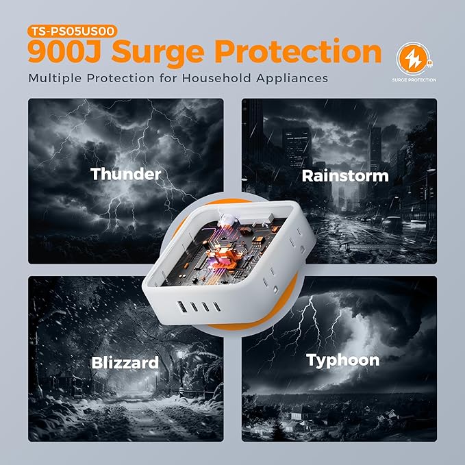- 900J Surge Protector Outlet: This power strip surge protector protects your devices, such as computers and other electrical appliances, from power surges and spikes, providing you with a safe and reliable charging environment