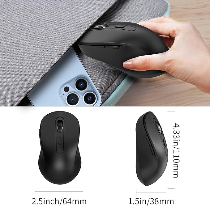 Wireless Mouse for Laptop, PC, Chromebook, Mac, MacBook, Silent Wireless Mouse with USB Nano Receiver, Side Button, 2400 DPI, Anti Slip Roller, 6 Button Ergonomics Cordless Computer Mice - Black