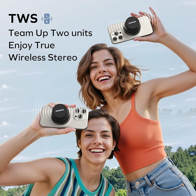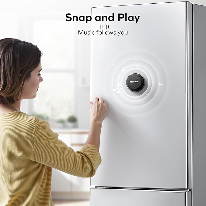 MOMAX Magnetic Portable Bluetooth Speaker - Mini Waterproof Shower Speaker with Bass, 12H Playtime, Outdoor Speaker True Wireless Stereo Pairing for Golf, Beach, Home, Travel, Gift Ideas