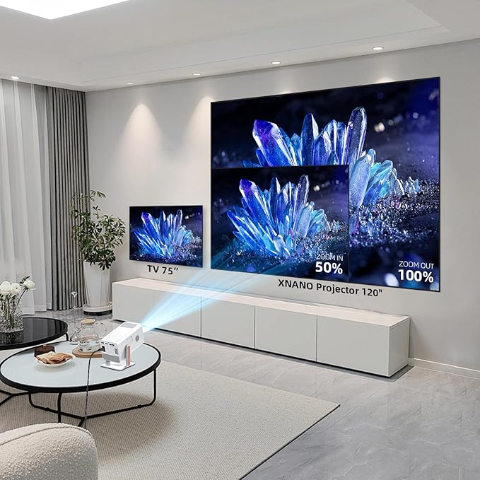 - 【Netflix-Licensed & Built-in Apps】The XNANO projector is licensed by Netflix, so you can enjoy exclusive access immediately just by turning on the device, and directly access a vast library of shows and movies with a single click. Built-in intelligent film and television ecological platform, pre-installed mainstream applications such as Prime Video/YouTube, and support expansion to more than 1.2 million film and television resources. 120-inch giant screen projection, 360° surround sound, create an exclusive home theater.