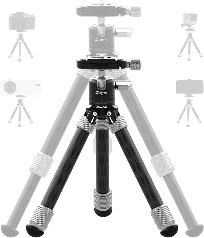 - High-end Carbon Fiber Material: The mini table tripod made of lightweight carbon fiber tubes to reduce weight while maintaining a high load capacity. Maximum load capacity 11 lbs/5 kg