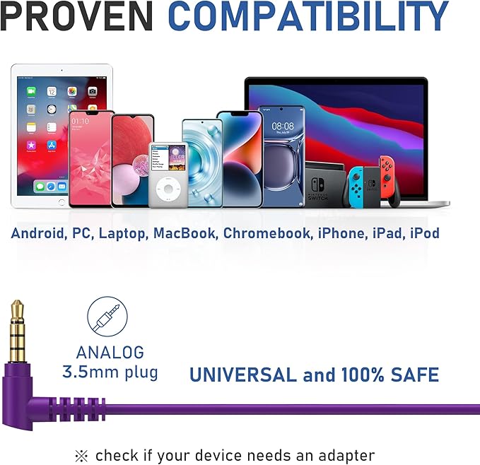 - Standard Plug: Our headphones wired support new generation iPhones via lightning adapters (not included), iPhone 5 and 6, iPad Mini/Air, Samsung S8/S9/S10, Galaxy M02s/F02s, M62/F62, A32/A52/A72, Note 8/9/10, iPod touch, and true value headphones wired with a 3.5 mm jack. The cable is 4.2ft/1.3m long