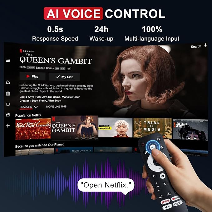 - [ AI Voice Assistant ] After pairing the remote control with the mini projector via Bluetooth, it is completely allowed to remotely control the projector at any angle within 10 meters without aiming the remote control at the projector. Plus, Intelligent interactive experience, hold the voice control button to issue commands such as "Open Netflix", "Play Ttanic", "What's the weather like?" or "Turn up the volume", watch, listen, play, pause command. HY320 MAX home projector has more settings and features waiting for you to explore.