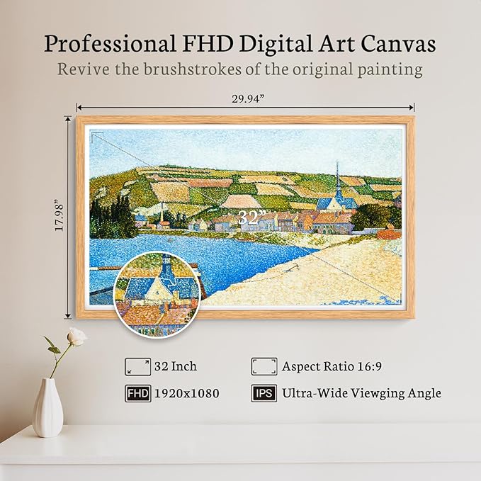 - 32 Inch FHD Touchscreen and 64GB Memory: BSIMB digital picture frame featured with 32 Inch 1920x1080 FHD IPS touchscreen and an aspect ratio of 16:9, digital frame displays stunning and clear images, which can revive the brushstrokes of the original painting. The digital picture frames built-in 64GB internal storage (holds 160,000+ pictures) with support for Micro SD Card (TF Card) and USB drive(Free bonus a USB drive). This photo frame electronic also with a remote control making it perfect for older or less tech-savvy people to operate. NOTE:The battery type for this remote is AAA+, not included in the package.