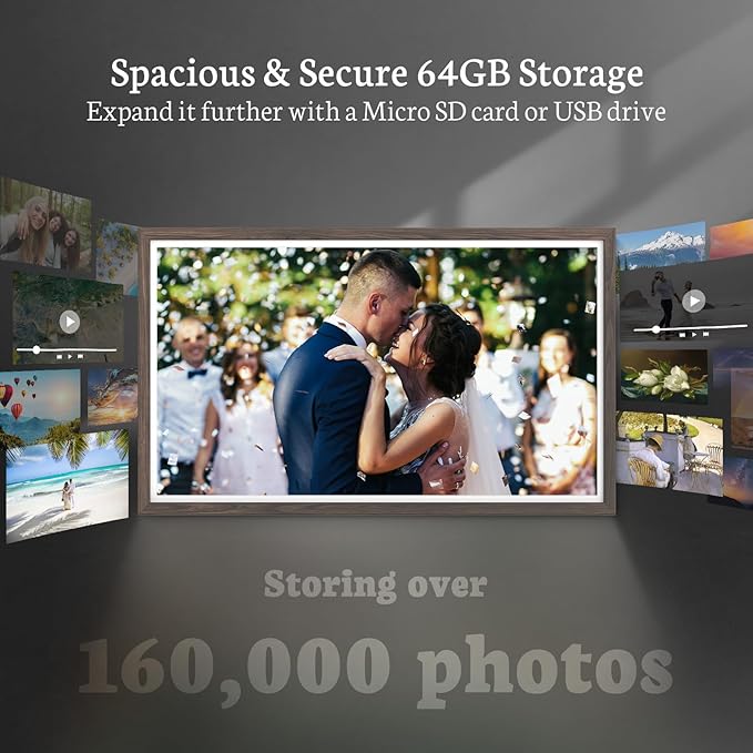 - All-In-One Digital Picture Frame for Gifting: BSIMB large digital picture frame designed with multi-functionalities. 1. Explore customisable settings including photo captions, weather and clock, slideshow mode, sleep mode and more. 2. Digital picture frame large perfect gift for families and friends on big days, such as wedding, birthday, Christmas, Thanksgiving, Mother’s Day and so on