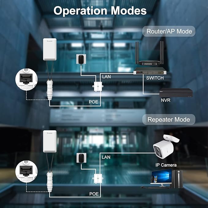 - Excellent WiFi Access "Helper": It supports up to 64 devices and provides 300 Mbps high speed with 100 M Ethernet port and 2*2 MIMO antenna. Point to Point/Multi-Point connection (1-4) can be used for elevator monitor/surveillance networks. Simple settings can achieve wireless optimization, and improve the quality and effectiveness of link transmission