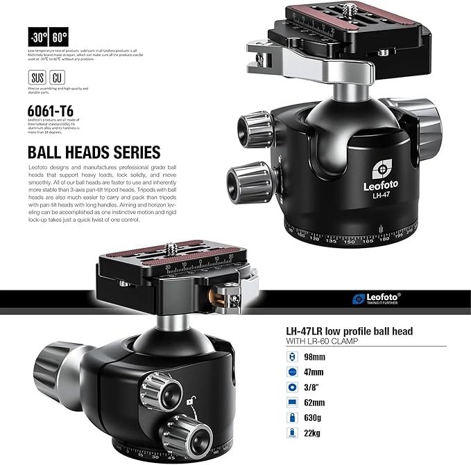 - Package Content: 1 x carbon fiber tripod, 1 x lh-47lr lever-release ball head, 1 x carry bag, 2 x Allen wrench, 1 x weight hook