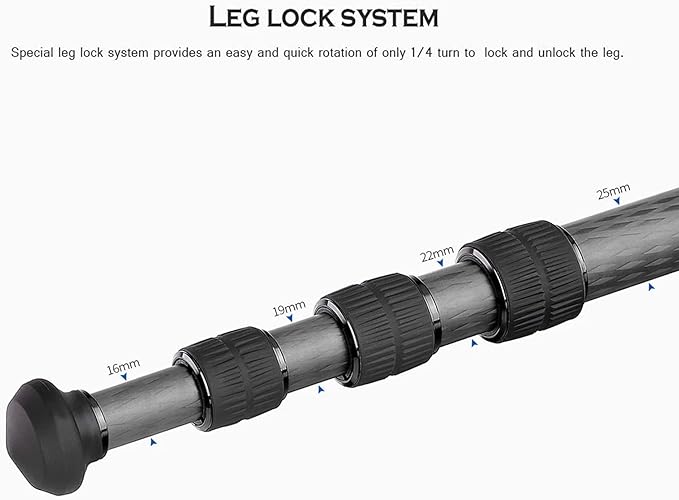 - Versatile Carbon Fiber Tripod: Our leofoto carbon fiber camera tripod features a telescopic design. This lightweight monopod is the perfect travel companion, weighing only 2.03 lbs yet supporting up to 17.64 lbs
