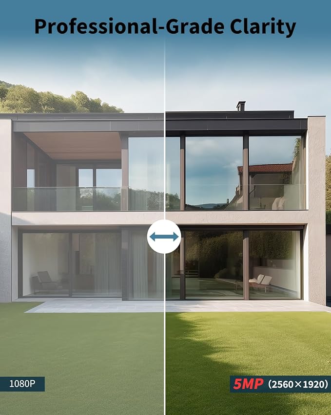 - 《High Definition 5MP》With a 5-megapixel resolution, our cctv camera deliver exceptional clarity and detail. This high pixel count ensures sharp and crisp images, providing enhanced surveillance capabilities. Whether monitoring indoor or outdoor spaces, the 5MP resolution captures crucial details with precision, offering superior home security monitoring.
