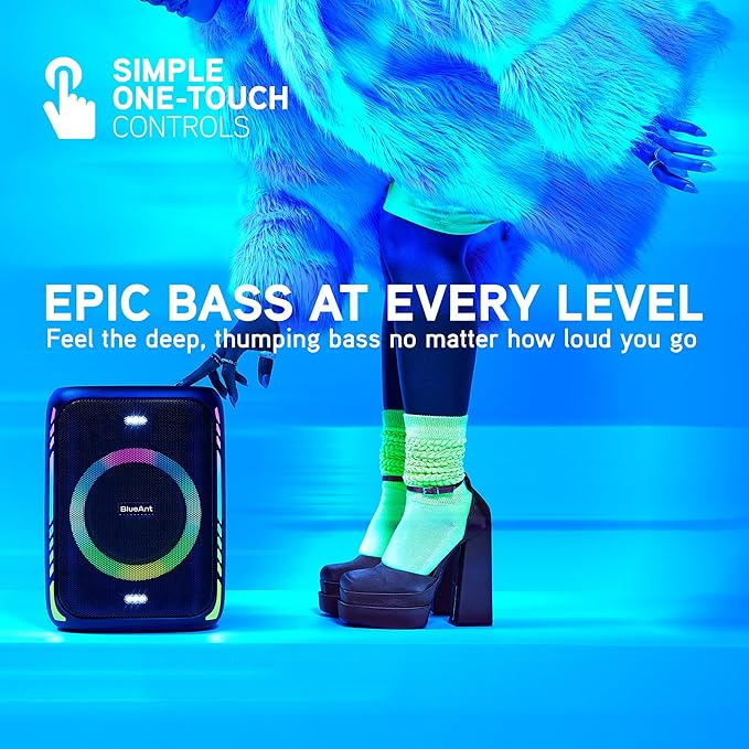 BlueAnt X5i | Portable Bluetooth Party Speaker | Black | 120W Peak Power | Includes (2) Wireless Microphones | (Up to) 30-Hr Playtime