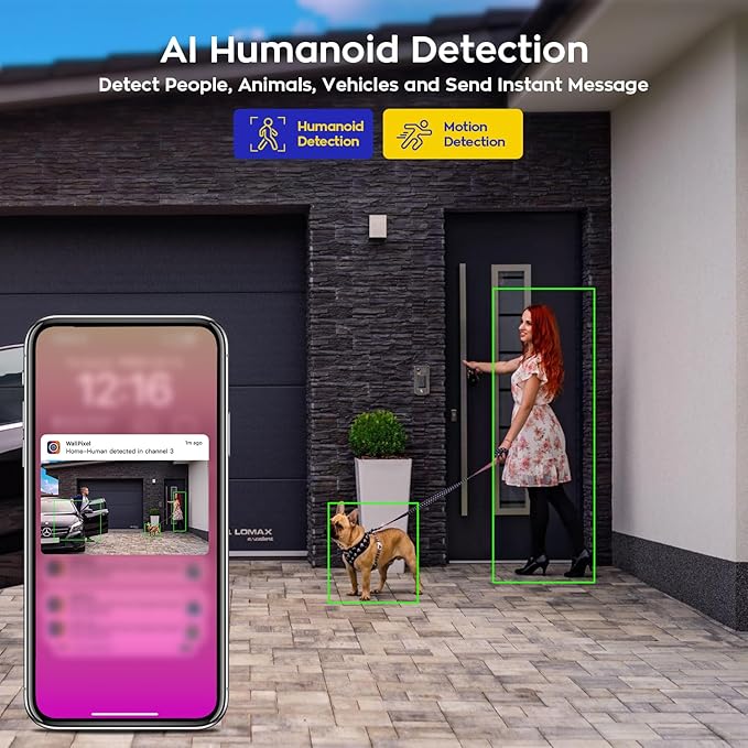 - 【AI Auto Tracking】You can control the PTZ camera to move horizontally and vertivally to see every directions. You can also let the camera do it automatically with the AI Auto Tracking. It follows people, animals or vehicles and records activities.