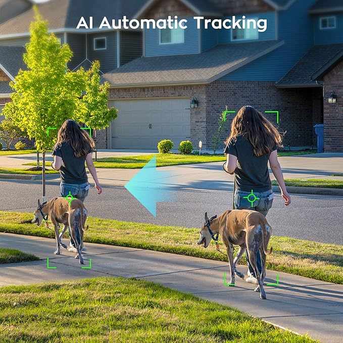 - 【AI Auto Tracking】You can control the PTZ camera to move horizontally and vertivally to see every directions. You can also let the camera do it automatically with the AI Auto Tracking. It follows people, animals or vehicles and records activities.