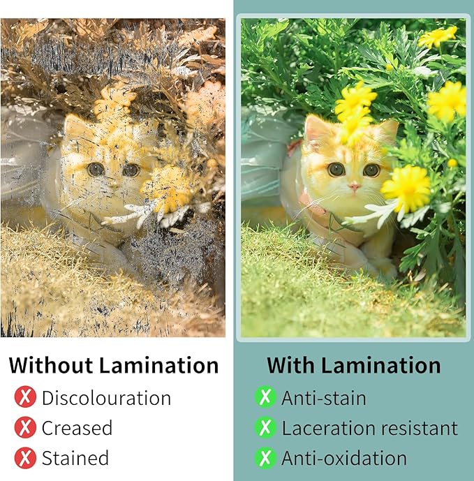 - Bubble-Free & Non-Jamming - Thermal laminates glide effortlessly through the laminator, ensuring a smooth and unobstructed lamination process every time, and advanced lamination pouches bond securely to the document, creating a bubble-free seal
