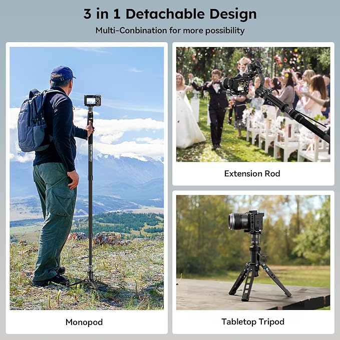 - Rapid One-Step Height Adjustment: Rotate the twist lock to fast extend or retract the camera monopod. One twist releases the tension and sets the desired extension length, allowing you to shoot at the desired height.