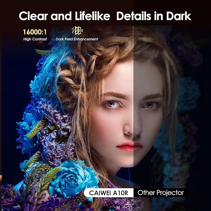 - [ Cinematic Color & HDR10 for Lifelike Images ] Immerse yourself in rich, accurate colors with DCI-P3 wide color gamut (the cinema standard) and 16000:1 high contrast. Advanced HDR10 processing and high-transmission lens ensure stunning depth and realism in every scene, all while being blue light safe.