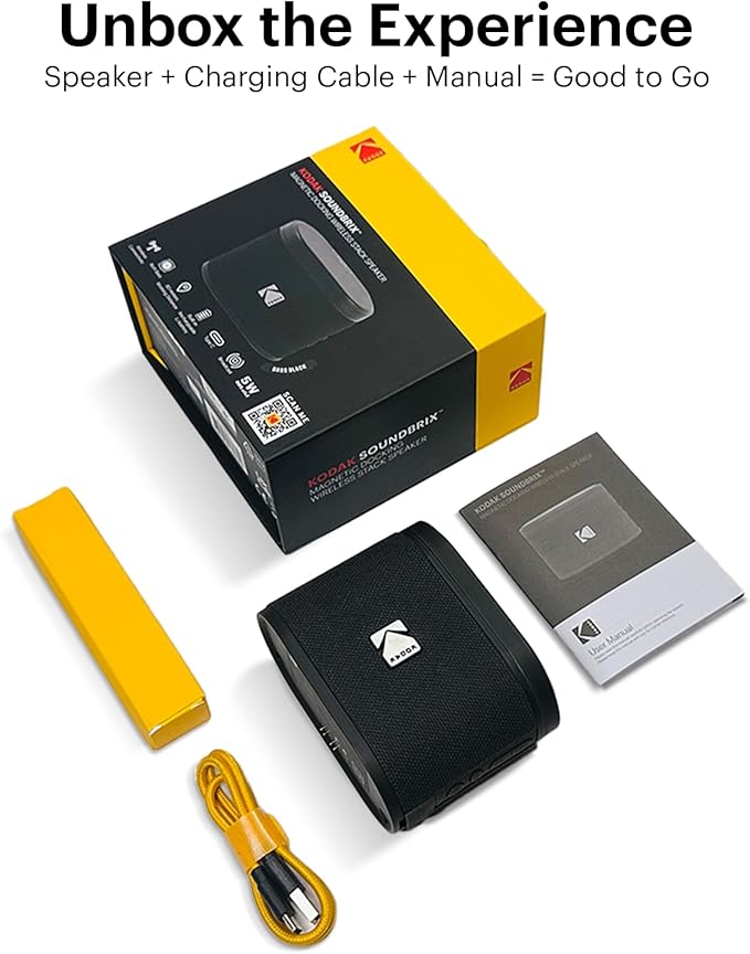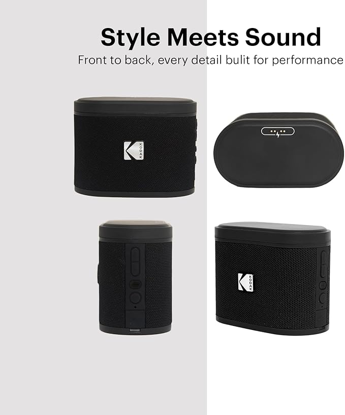 KODAK SOUNDBRIX™ Bluetooth Speaker with HD Sound Portable Wireless IPX4 Water Resistant Upto 5H Playtime V5.4 for Home Party Outdoor Beach Electronic Gadgets Birthday Gift Black Stackable Speakers