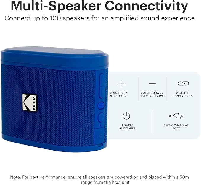 KODAK SOUNDBRIX™ Bluetooth Speaker with HD Sound Portable Wireless IPX4 Water Resistant Upto 5H Playtime V5.4 for Home Party Outdoor Beach Electronic Gadgets Birthday Gift Blue Stackable Speakers