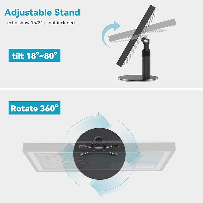 - Adjustable Function: The echo show 21 and echo show 15 stand features rotation and tilt functions, capable of tilting up to 90 degrees and rotating 360 degrees, effectively meeting users' needs. (Note: The device is not included)