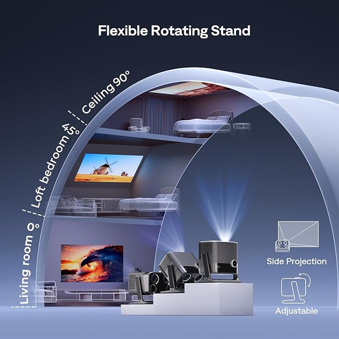 - Projector for Bedroom - 360° Visible Speakers & DoIby Audio: 20W high-power speakers with DoIby Audio bring cinema-grade sound to life. The rear-facing Visible Sound design delivers deep bass and crisp highs, turning every movie night into an auditory delight.