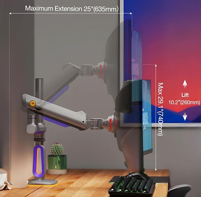 NB Extra Height Gaming Monitor Arm for 32 to 60 Inches Screen, Load up to 20 kg, VESA 75/100, RGB-Light, Heavy Duty, Multi Angle Adjustable, Premium Aluminum, Long Arm Extension Purple Blue