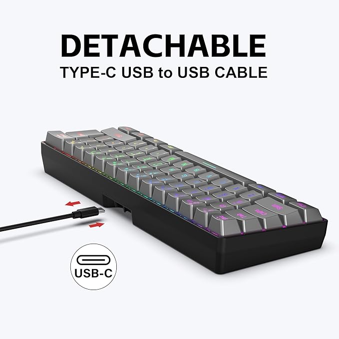 - Simple Elegant Personality — For some small keyboard, if you are tired of monotones, you can choose this elegant and mature iron grey style. In addition,detachable cable makes this portable gaming keboard connecting simple and easy to carry. USB Type-C connection also provide more stable transmission