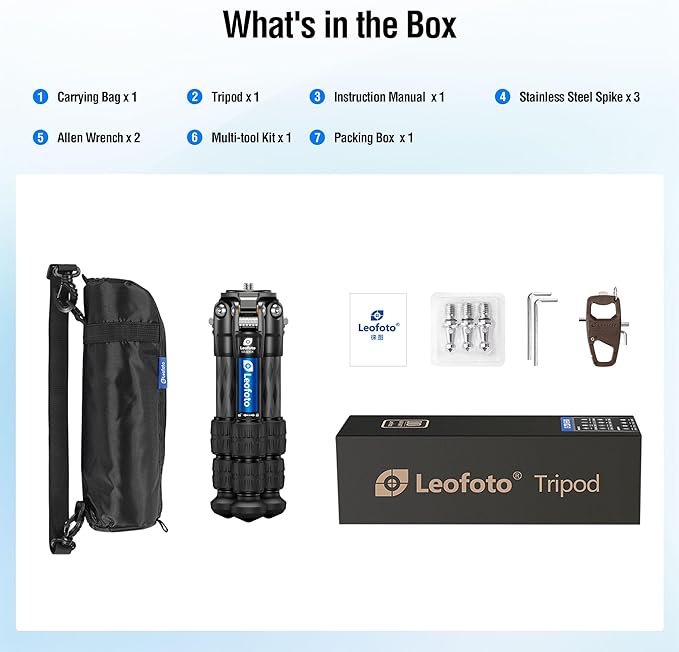 - Removable and Reversible Center Column: The included Leofoto Carbon Fiber Add-On Column is an adjustable, two-section center column extension for tripods and monopods. Made up of two lightweight yet durable 10-layer carbon fiber