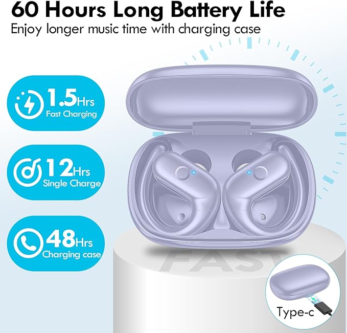 - Impressive 60H Total Playtime:Enjoy up to 12 hours of continuous playtime on a single charge, with the included charging case offering an additional 48 hours of battery life. That’s a total of 60 hours of music, calls, and more!