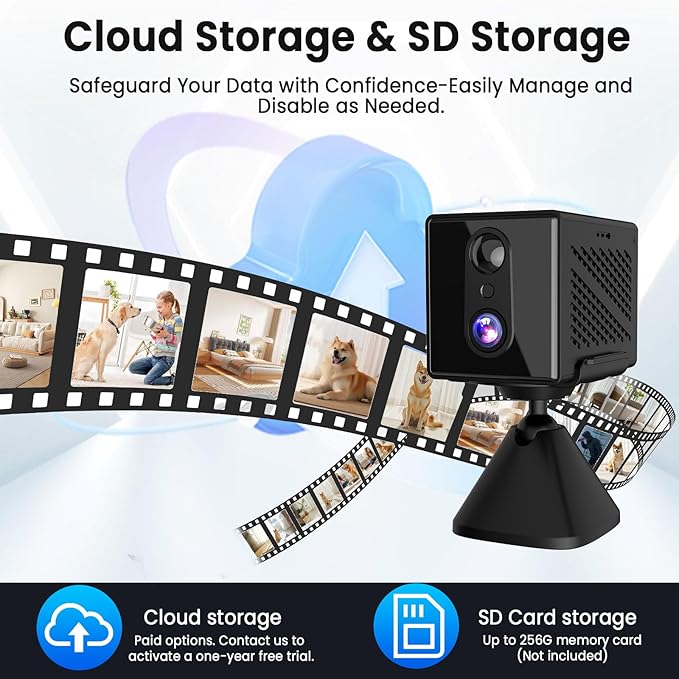 - 【Flexible Video Storage & Playback】: Choose between two convenient storage options: cloud storage or local storage. Cloud storage is optional, and you can cancel your subscription at any time. Alternatively, you can use an SD card to store your footage, giving you easy access to video playback whenever you need it.(Video-only surveillance solution)