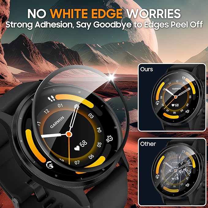 - Easy to install: for Garmin Venu 3 watch screen cover uses bubble free adhesive for easy installation. This pakaging includes all necessary tools and instructions to enable anyone to easily, accurately, and safely use the protector without creating any bubbles or residue