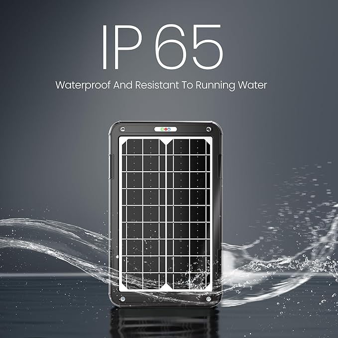 - Stronger & More Long-lasting: The 15W solar car battery charger adopts high-transparency glass, which is high-strength, impact-resistant, wind-snow-resistant low-iron tempered. This waterproof solar battery charger needs no additional maintenance
