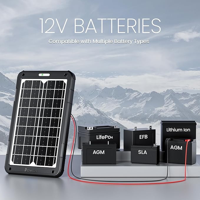 - Smart Internal Protection System: From POWOXI technology Solar battery charger will not damage the battery and overcharge. The built-in smart protection system and blocking diode structure ensures no overvoltage and short circuit. Make charging safer