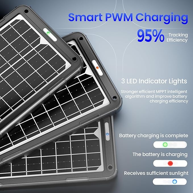 - Smart PWM Built-in Controller: Maintains Battery Health with 3-Stage Protection. Automatically adjusts voltage for optimal charging, preventing overcharge & extending battery life. Perfect for long-term maintenance