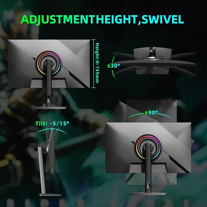 - Ergonomic Stand, versatile connectivity and VESA: It features an ‘ergonomic stand’ that adjusts the height and angle to a comfortable viewing position, effectively preventing eye and shoulder fatigue and neck stiffness caused by prolonged use of the monitor.PC monitors, gaming laptops via HDMI and DisplayPort ports, Switch, XBOX, PS5, Mac Mini, etc. Compatible with 100 mm x 100 mm VESA mount for optimal display.