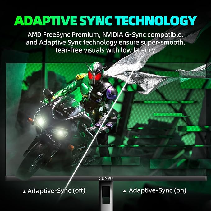 - Faster Than Every Move: CUNPU 1440p 300Hz gaming monitors are compatible with both FreeSync and G-Sync technology. This ensures synchronized transfer rates between the graphics card and monitor, which eliminates screen tearing and latency. As a result, you can enjoy a smooth and stable gaming experience. Enjoy hours of gaming or video-watching without straining your eyes.