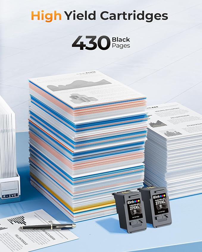 - E-Z Ink 275XL ink cartridges for Canon pg-275 black ink cartridge are equipped with the latest upgraded chip, perfectly compatible with your printer, and advanced production technology and strict quality inspection processes to provide you with clear text printing results.