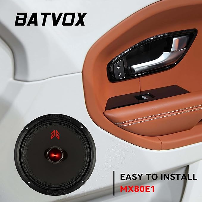 MX80E1 Midrange Loudspeaker 8" Red Bullet, 560W Max, 6 Ohms, Premium Quality Audio Door Speakers for Car or Truck Stereo Sound System, Black (2 Speaker)